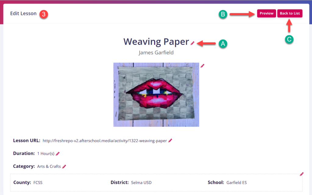 - Edit the Lesson Plan Details Using the Edit (Pen) icon