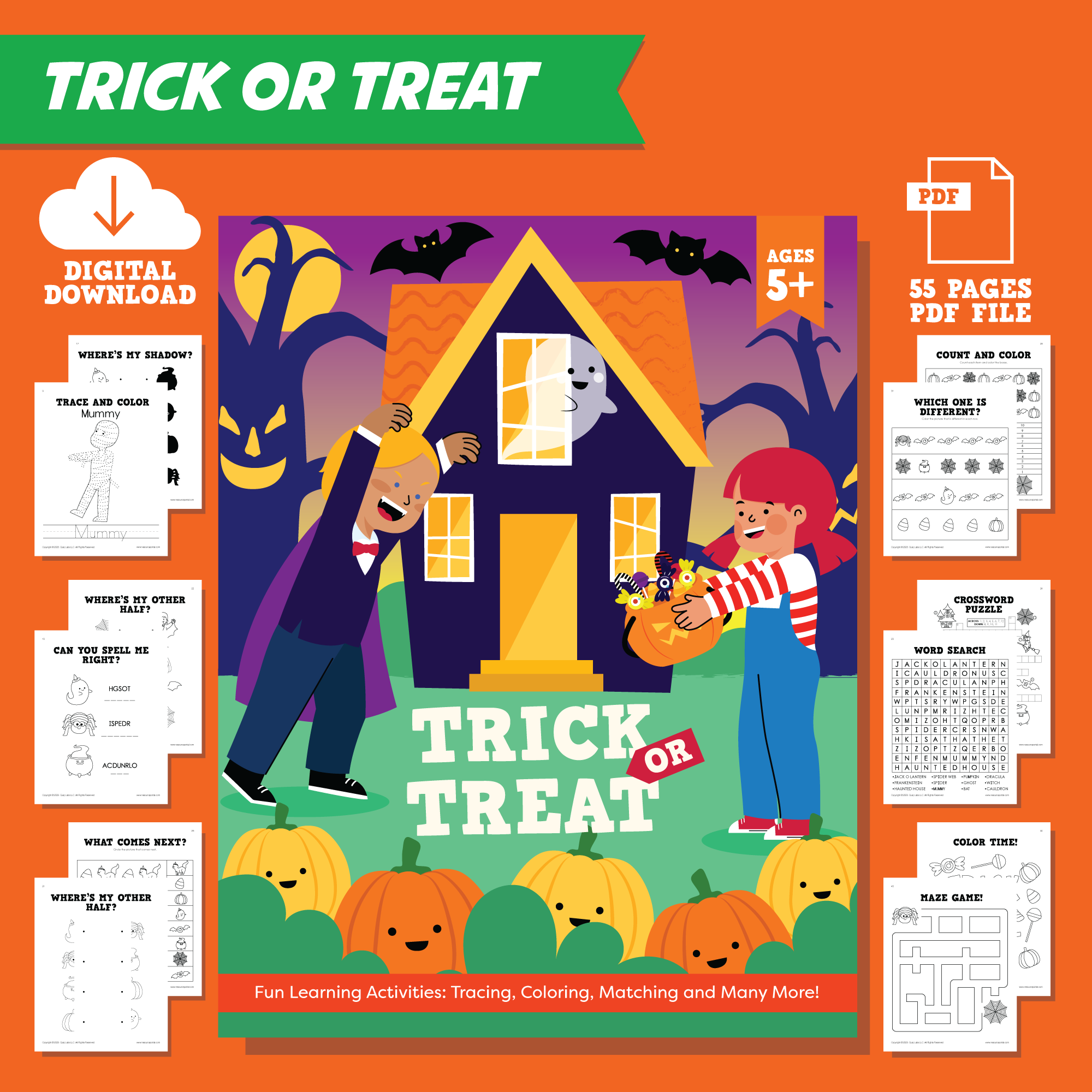 Halloween is a time for kids to let their imaginations run wild. They will have a lot of fun with this book and it will get them excited for trick-or-treating! Children will learn how to write words by tracing them as well as how to turn jumbled letters into recognizable words with activities like matching, unscrambling, and crosswords. While learning, they can also practice their fine motor skills by coloring the pictures found throughout the book.